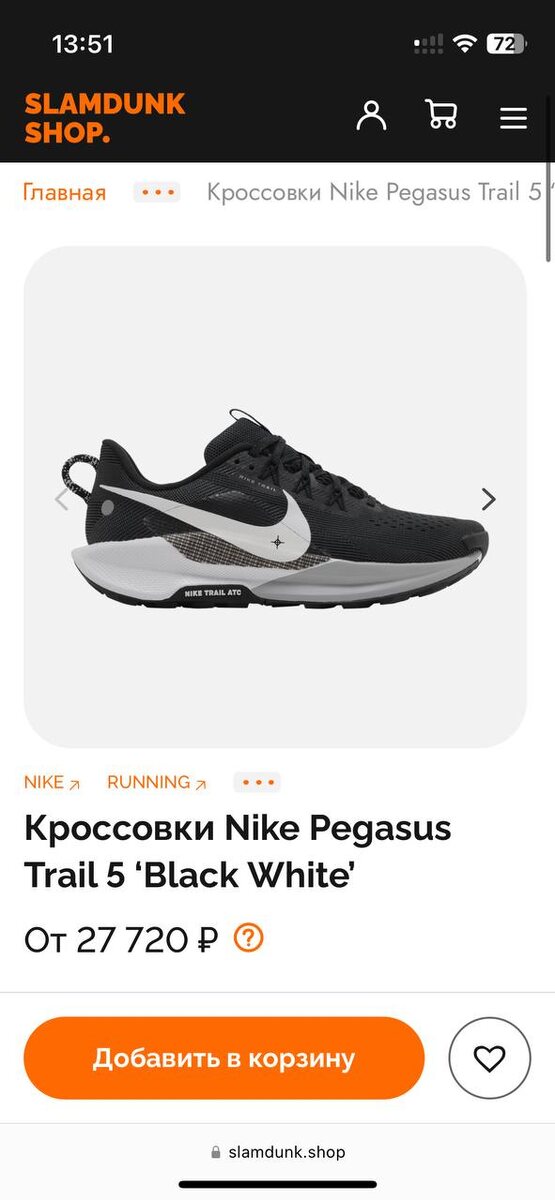 Забыли сказать, мы на выходных выкупили топовую пару для бега 🏃🏻♂️🔝 Nike Pegasus Trail 5 ‘Black White’ 13.500₽ - 40.5(EU) (в магазине переплата будет практически в два раза - 27.720₽ 🤫🤫) Экономьте вместе с нами и пользуйтесь нашим сервисом 🥳 #покупки 🧩Для заказа писать сюда ☑️ K&F | STORE. Подписаться 🙂