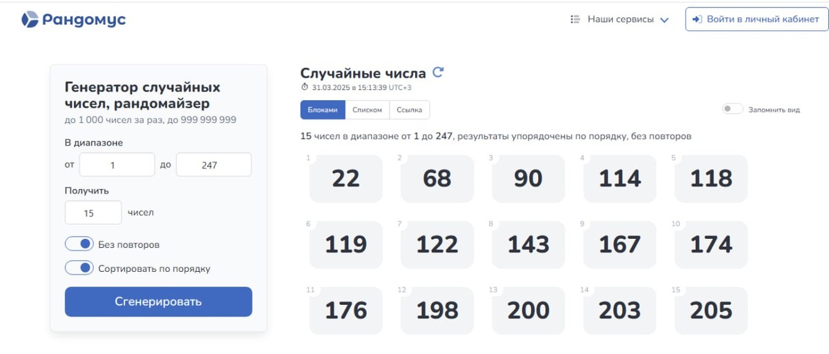 Из 247 участников мы случайным образом выбрали 15 победителей.