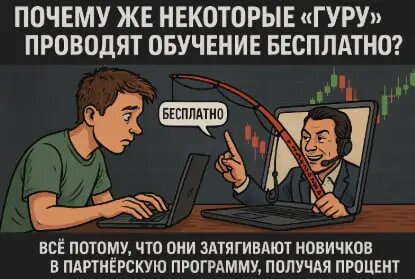 Вот и подъехал настоящий грязный инсайд. Почему, чёрт возьми, некоторые «гуру» проводят свои «обучения» бесплатно? Добряки? Альтруисты? Просветлённые буддисты с графиком торгов в MetaTrader? Да щас.