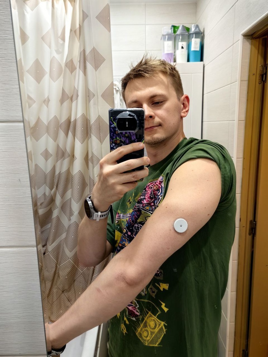 Эксперименты 🤓Изучаю свой организм с каждым годом все лучше и лучше, добрался до сахар в крови, поставил датчик freestyle libra 2 - датчик с иглой, который 24/7 анализирует сахар в крови, 😮💨установка довольно простая, может установить каждый желающий по инструкции. Действует 14 дней с момента активации. Так и зачем мне это нужно? ☝️Начну с того что питание это большая часть здоровья человека, а каждый человек уникален и мне важно питаться осознанно, отсюда и энергия на изучение этого мира, эффективность. Высокие показатели сахара - перегрузка поджелудочной железы, сердечно-сосудистой системы - отсюда усталость, перепады настроения, низкая эффективность, сонливость 📈Поставил зелёную дорожку от 3,9 до 7,0 ммоль/л в этом диапазоне продукты, которые не вредят моему здоровью. По итогам эксперимента будет скорректировано питание 👌