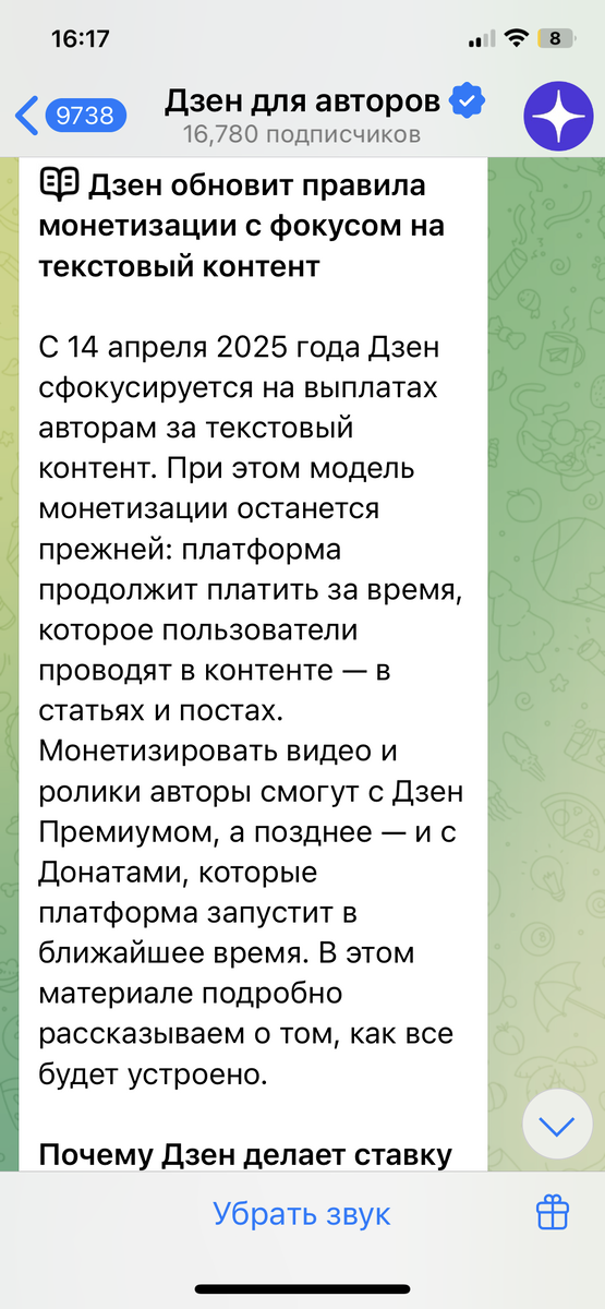 Это скрины с официального канала Дзен для авторов. Было бы 1 апреля - посчитала бы первоапрельской шуткой. Но, увы. Или может, нечаянно выложили раньше срока и всё-таки шутка?