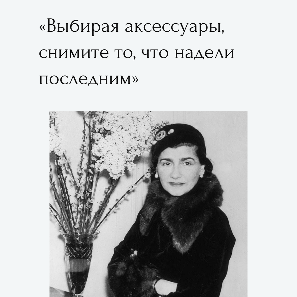 Путь, который Коко проделала, чтобы стать успешной, впечатляет. Поэтому даже сто лет спустя её слова разбирают на цитаты и восхищаются этой мудростью. Всегда хлëстко, дерзко, но абсолютно точно в цель!