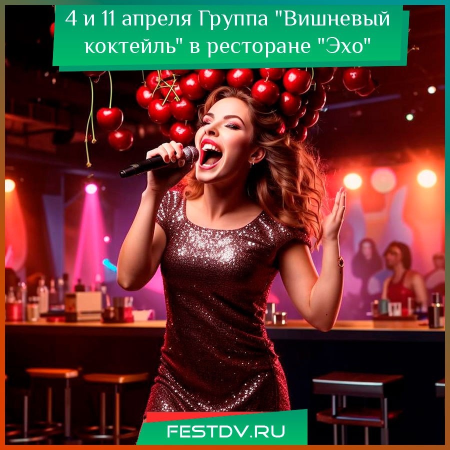 Взрывной рок-вечер с группой GoodZone в баре "Гараж" Дата и время: 4 апреля, 21:00 Место проведения: г. Хабаровск, ресторан “Эхо”, ул. Волочаевская 54 Стоимость: бесплатно ₽ Телефон для справок: +7 (4212) 791-791 (бронирование столиков) Приглашаем всех любителей живой музыки на два зажигательных вечера в ресторане “Эхо”! 4… #фестивалим #хабаровск #вхабаровске #отдыхдв https://festdv.ru/meropriyatiya/kalendar-sobytij/4-aprelya-gruppa-vishnevyj-koktejl-v-restorane-eho/