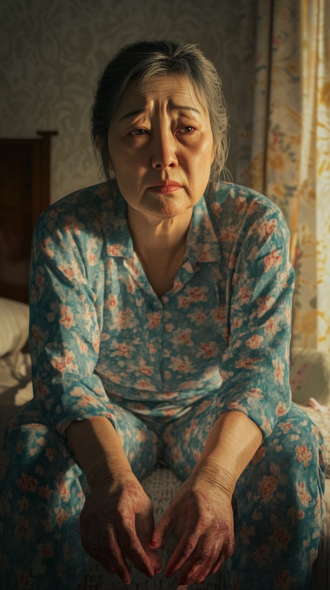 Создано на основе запроса: A realistic photo-style scene: a middle-aged Korean woman with a puffy face, swollen hands and feet, sitting on the edge of her bed in the morning. Her expression looks tired and uncomfortable, and her eyes and cheeks appear visibly bloated. Her hands and feet are slightly red and enlarged due to swelling. She wears simple pajamas, and the background is a softly lit bedroom with morning sunlight coming through a curtain. The atmosphere feels realistic and relatable. Photographic style, natural soft lighting, high detail --- Автоперевод: Реалистичная сцена в стиле фото: корейская женщина средних лет с опухшим лицом, опухшие руки и ноги, сидящая на краю своей кровати утром. Круто вышло? 🤔 https://dzen.ru/id/65c0c65c86e4f837c27b24d7 #ИИ #AI #нейросеть #midjourney #art