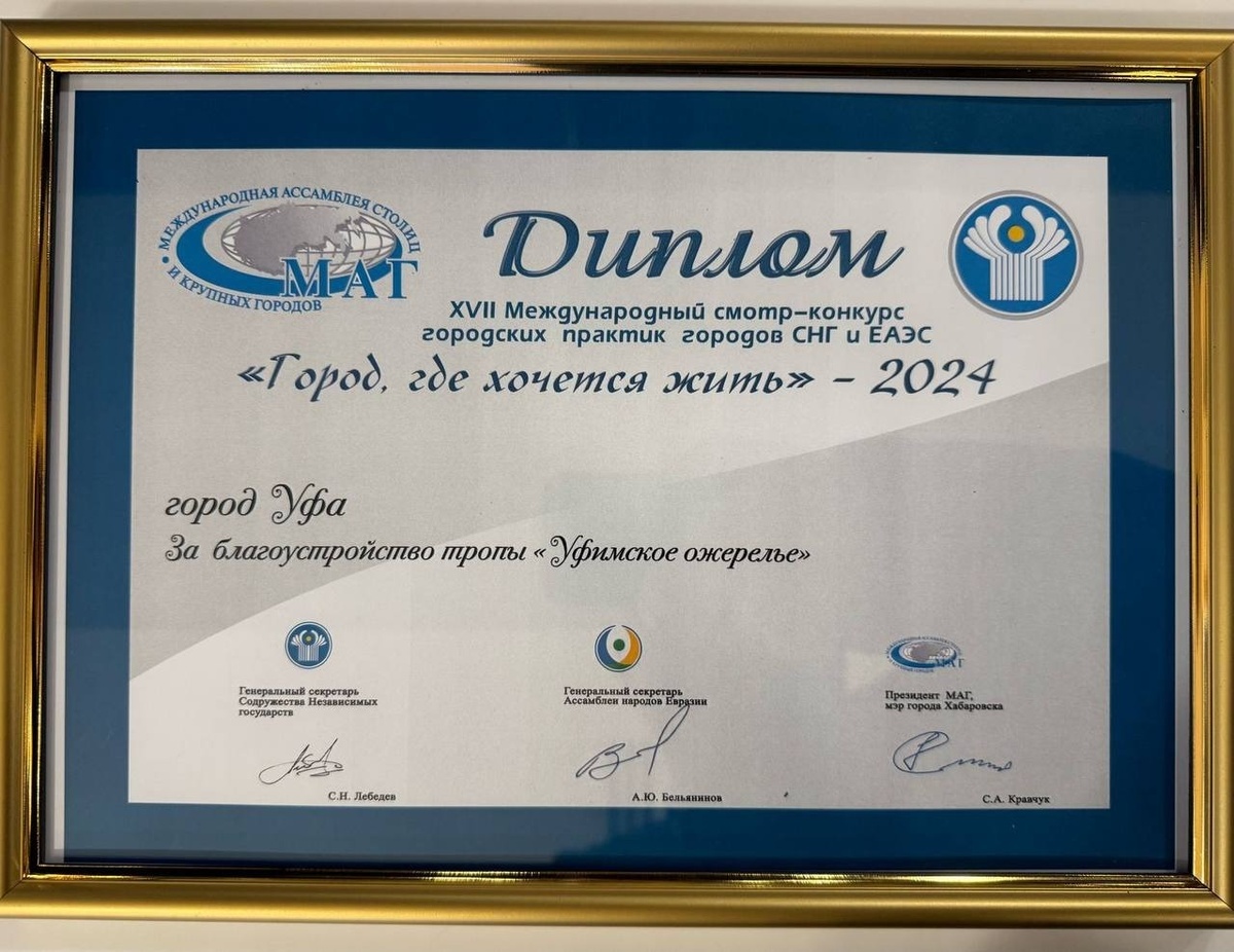 Проект «Уфимское Ожерелье» отмечен дипломом Международного конкурса