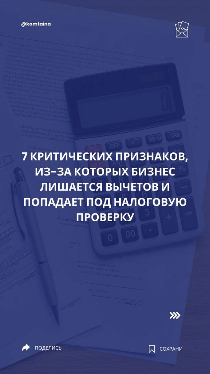 ⭐️ 7 КРИТИЧЕСКИХ ПРИЗНАКОВ, ИЗ-ЗА КОТОРЫХ БИЗНЕС ЛИШАЕТСЯ ВЫЧЕТОВ И ПОПАДАЕТ ПОД НАЛОГОВУЮ ПРОВЕРКУ
