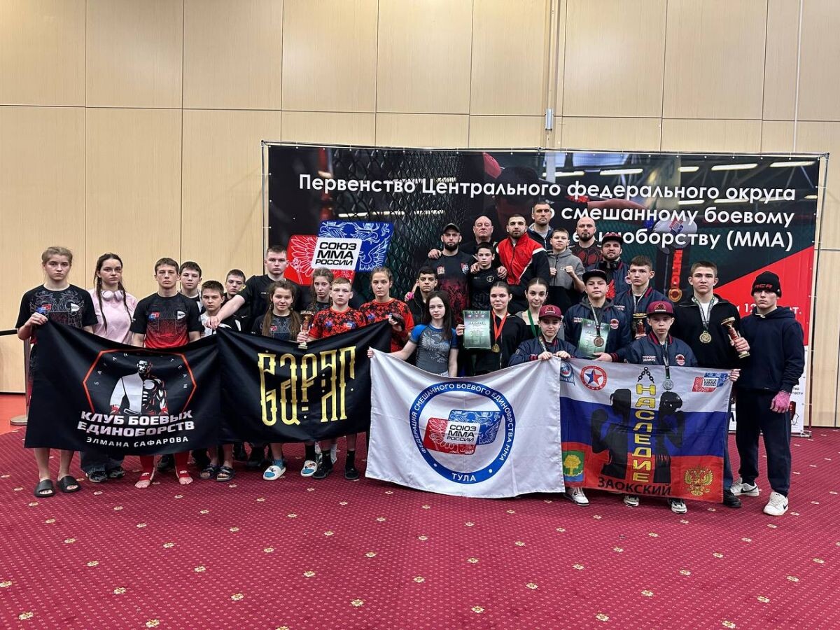 В Орле прошло первенство Центрального федерального округа по смешанному боевому единоборству (ММА). Побороться за медали соревнований собралось 370 спортсменов из всех регионов округа. Награды разыгрывались среди юношей 12-13 и 14-15 лет и юниоров 18-20 лет. Сборная Тульской области в составе 33 человек достойно выступила на Первенстве округа. В составе нашей команды были спортсмены, представляющие КБЕ Сафарова Э.Г. под руководством вице-президента Федерации ММА Элмана Сафарова; Центр единоборств «Юнити» под руководством вице-президент Сергея Арбузова; КСЕ «Варяг» (гл. тренер Станислав Богданов), КСЕ «Наследие» главного тренера Максима Рябичева, СК «Гладиатор», СК «Магура» под руководством Ильи Герасименко, ЦДДМ и «Самбо-94» г. Узловая под руководством главного тренера Андрея Рюмшина. Наши единоборцы завоевали восемь золотых, шесть серебряных и семь бронзовых медалей. А сборная Тульская область заняла второе место в общекомандном зачёте, опередив Белгородскую область, и пропустив впер
