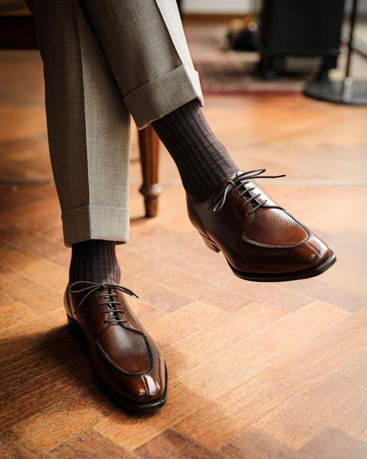 За счет декоративной строчки мы получаем свежий взгляд на классическую и универсальную модель. Эту обувь можно использовать в формальных, элегантных или casual образах. Дерби с активной строчкой не подвластны времени и впишутся в базовый гардероб каждого джентльмена.