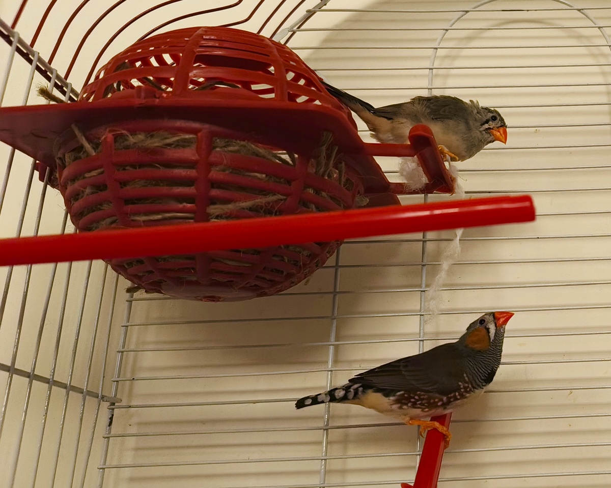 Вчера мне подарили парочку зебровых амадин. У меня они были в Москве одно время и усиленно размножались. Птенцов раздавала по знакомым и знакомым знакомых. Мне спустя годы люди в сети писали, что у них живут потомки моих птичек :)) Амадин я хотела с детства. Недалеко от моего второго дома (даже третьего, в первом я жила до 4 лет, потом во втором лет до 16 и потом мы снова переехали) по выходным был базар, на котором продавали всякую живность. Амадин я впервые увидела там. Скорее всего, привезли и разводили выезжавшие за границу моряки. Пара, кажется, стоила 25 рублей - четверть приличной зарплаты. мне - ребенку из очень бедной семьи - о таких можно было только мечтать. Что я и делала. Потом, уже в Москве, мечта исполнилась. И вот теперь они у меня появились снова. В Ливане. Парочка, которая сразу же начала таскать веревочки в гнездо. Они ткачики, в природе делают себе такую штуку типа варежки и туда откладывают яйца. В домашних условиях им ставят каркас и дают веревочки и соломку. Во
