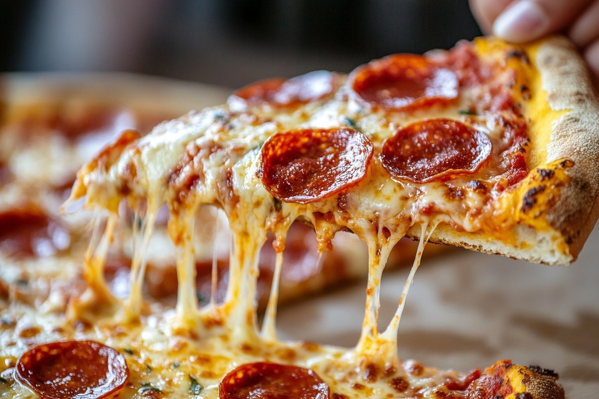 Создано на основе запроса: eating a classic pepperoni pizza close up