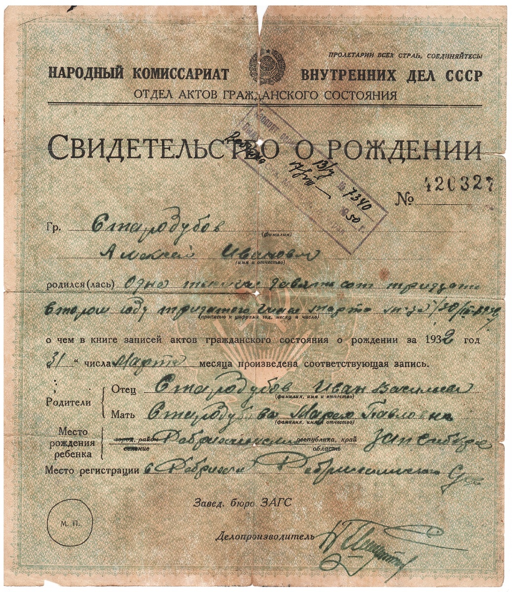 Вчера был день рождения моего дедушки - Стародубова Алексея Ивановича. Он родился 30 марта 1932 года в с. Ребриха Алтайского края. В семье переселенцев из Тамбовской губернии с. Стежки - Стародубова Ивана Васильевича и Стародубовой (Трубниковой) Марии Павловны. Я рассказывала об этих фамилиях ранее.