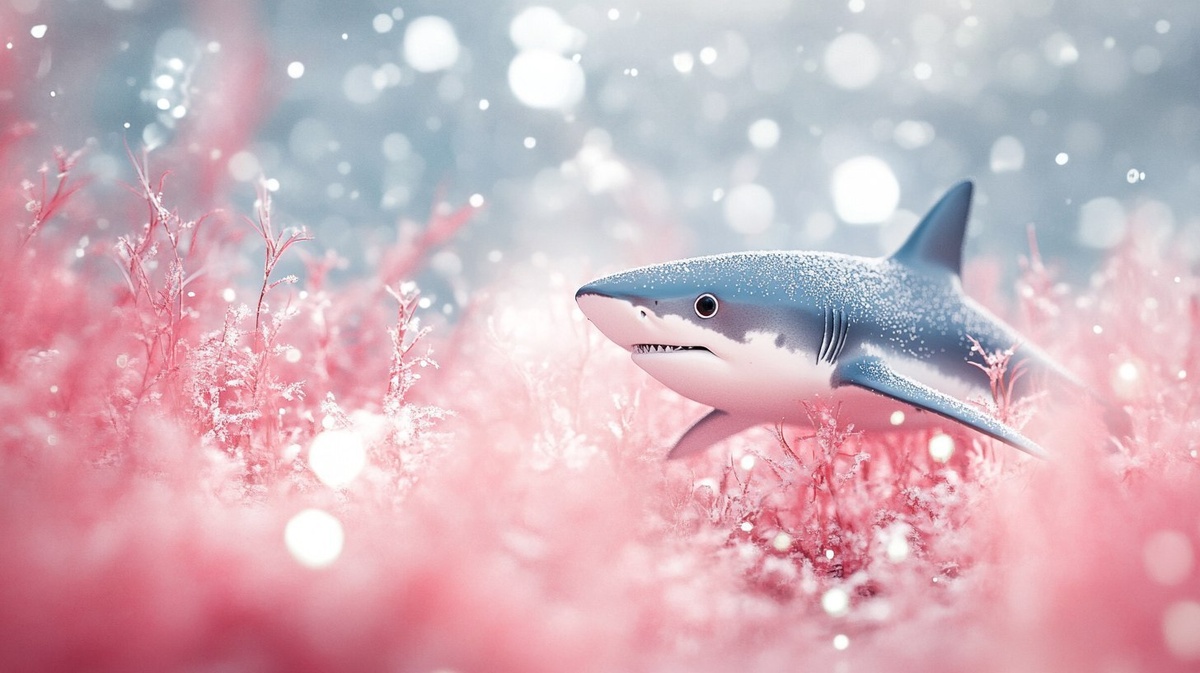 Создано на основе запроса: miniaturecore, meadow, snow on ground, shark, snowing, pink grasses, sparkle, bokeh, dreamcore, polaroid