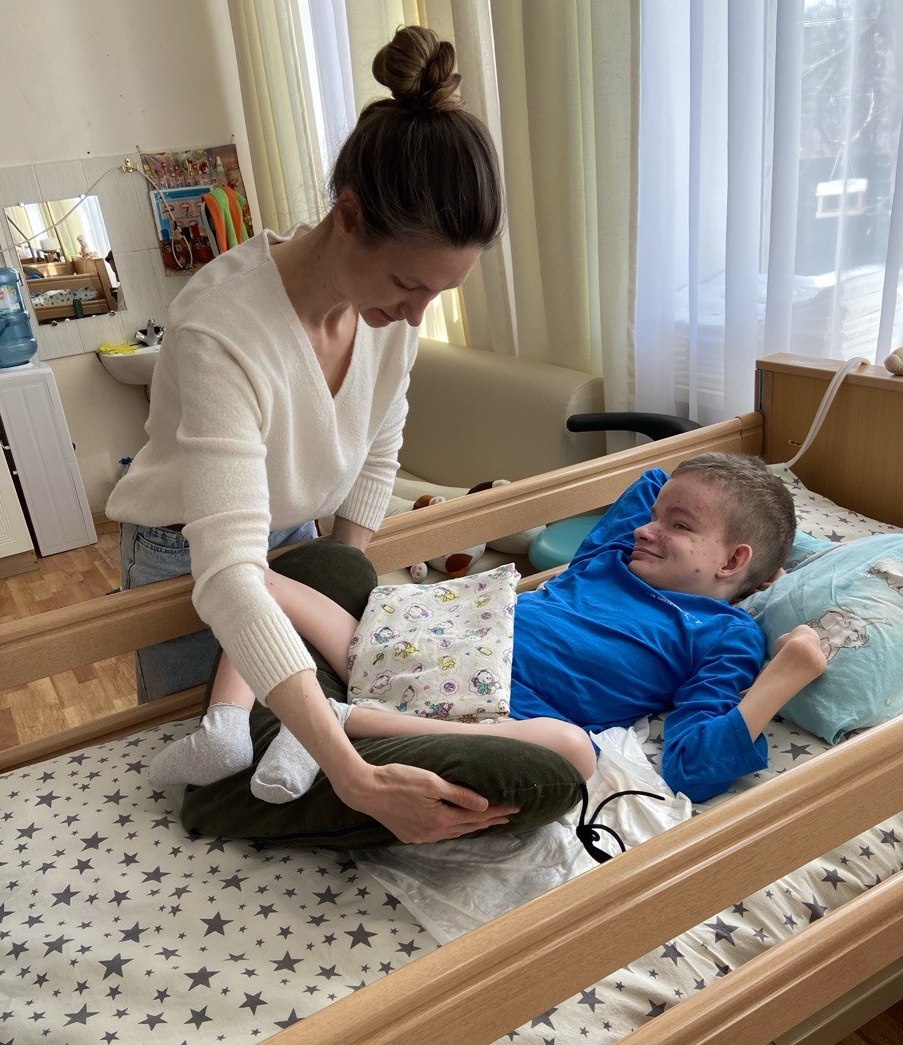💭Как отмечает Екатерина Хитрова "зачастую он неудобно лежал в кровати, ему ничего не было не видно, он был отвернут куда-то к стене. Сейчас он в правильном положении, ему видна комната, он сам начинает общаться с другими воспитанниками, звать их, говорить "привет, а я тут!", а это уже предпосылка к тому, чтобы завязалось общение".