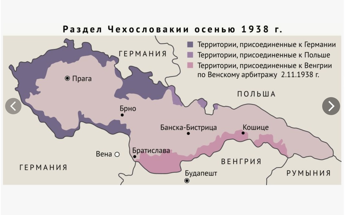 В сентябре 1938 года разразился Судетский кризис — Германия требовала передать ей область Судет, населённую преимущественно немцами. В конечном итоге Франция и Великобритания пошли на уступки Гитлеру, заключив Мюнхенское соглашение. А теперь внимание: в этом разделе участвовала не только Германия, но и Польша.