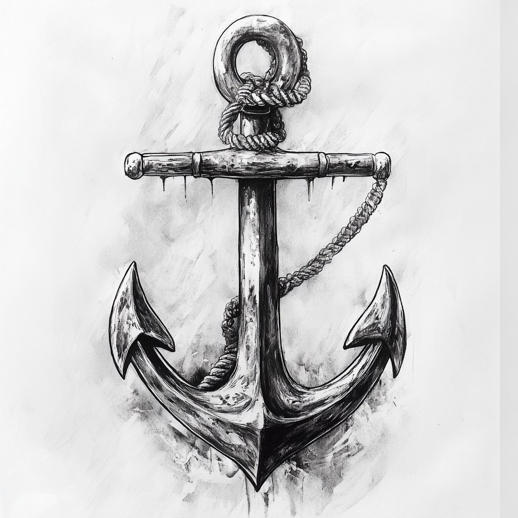 Создано на основе запроса: realistic anchor drawing detailed black and white