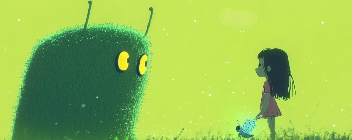 Создано на основе запроса: little girl and her blue lepidoptera imaginary friend, by studio ghibli