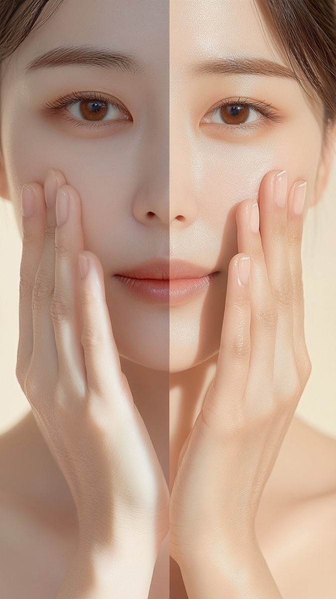 Создано на основе запроса: Split view comparison: on the left, a close-up of swollen hands and feet of a middle-aged Korean woman puffiness visible in the fingers, ankles slightly enlarged, skin slightly reddish and tight. On the right, normal healthy hands and feet of the same woman relaxed, natural skin tone, and no swelling. Both sides are shown in natural lighting with soft shadows on a neutral background. Photographic style, realistic texture, clinical but warm atmosphere