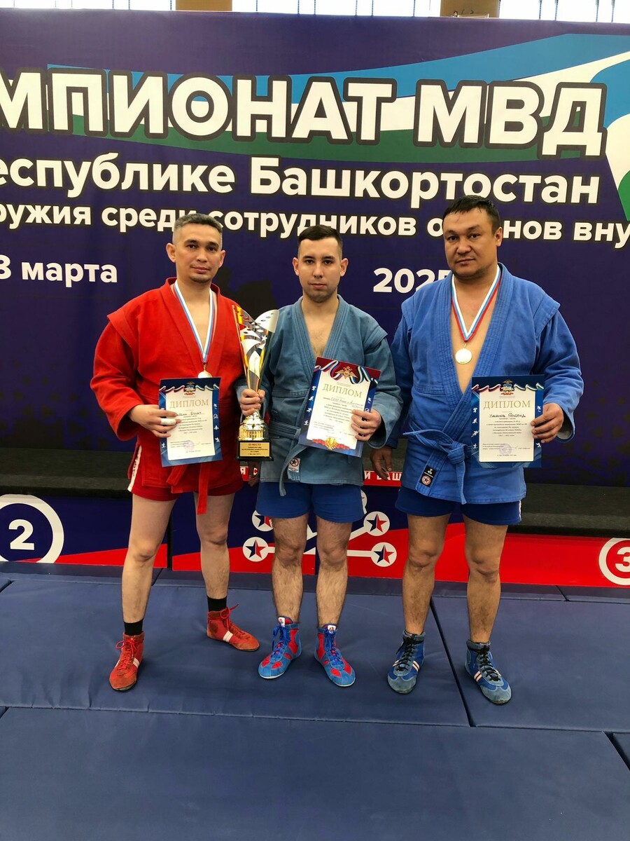 Во Дворце Борьбы г. Уфа состоялся чемпионат МВД по самбо среди сотрудников органов внутренних дел Башкортостана. Команда аскинских полицейских заняла 3 место, есть результаты и в личном зачете. Всего в соревнованиях приняли участие 23 команды, прошедшие отбор на зональных этапах. Спортсмены боролись за победу в семи весовых категориях. В личном зачете наши полицейские показали хорошие результаты: начальник группы дознания – майор полиции Флорид Хасанов завоевал 1 место в весе до 98 кг; инспектор по исполнению административного законодательства ОГИБДД – лейтенант полиции Булат Гайсин на 2 месте в весе 79 кг. Общекомандное первое место — УМВД России по г.Стерлитамак, второе место — УМВД России по г. Уфе., третье место – ОМВД России в Аскинском районе! Команда Отделения МВД России в Аскинском районе выражает благодарность ФОКу «Батыр» и лично тренеру по самбо Айнуру Файзрахманову за неоценимую помощь в подготовке команды к зональному турниру и чемпионату республики.
