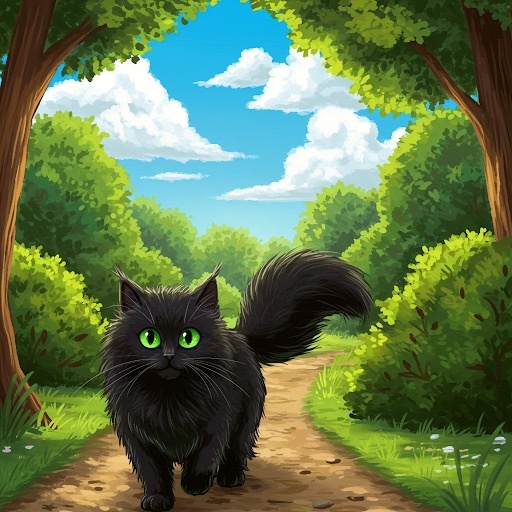Однажды утром котик Мур-Мур проснулся пораньше. Солнце только вставало, росинка блестела на траве, а птички щебетали так весело, что котик сразу понял — сегодня будет хороший день! — Схожу-ка я в лес, — подумал он. — Погуляю, грибов понюхаю… вдруг кого встречу. Он прошёл через калитку, перебежал тропинку — и оказался в тени деревьев. Лес был зелёный, мягкий, как подушка, и пах мхом и земляникой. Не успел Мур-Мур пройти и десяти шагов, как услышал: — Ой-ой-ой! Ай-ай-ай! Под кустом сидел зайчонок, держа лапку. — Что случилось? — спросил Мур-Мур. — Я споткнулся о корень… теперь не могу скакать. Мур-Мур аккуратно осмотрел лапку, дунул на неё и предложил: — Садись ко мне на спину. Я тебя донесу. И понёс зайчонка по тропинке. А дальше, под ёлкой, они увидели белочку, которая пыталась тащить большой гриб. — Уф! Тяжёлый какой! — вздыхала она. — Помочь? — спросил Мур-Мур. И вот уже они втроём тащили гриб к белкиному дуплу. — А теперь — чай с орешками! — сказала белочка. Тут с дерева слетел