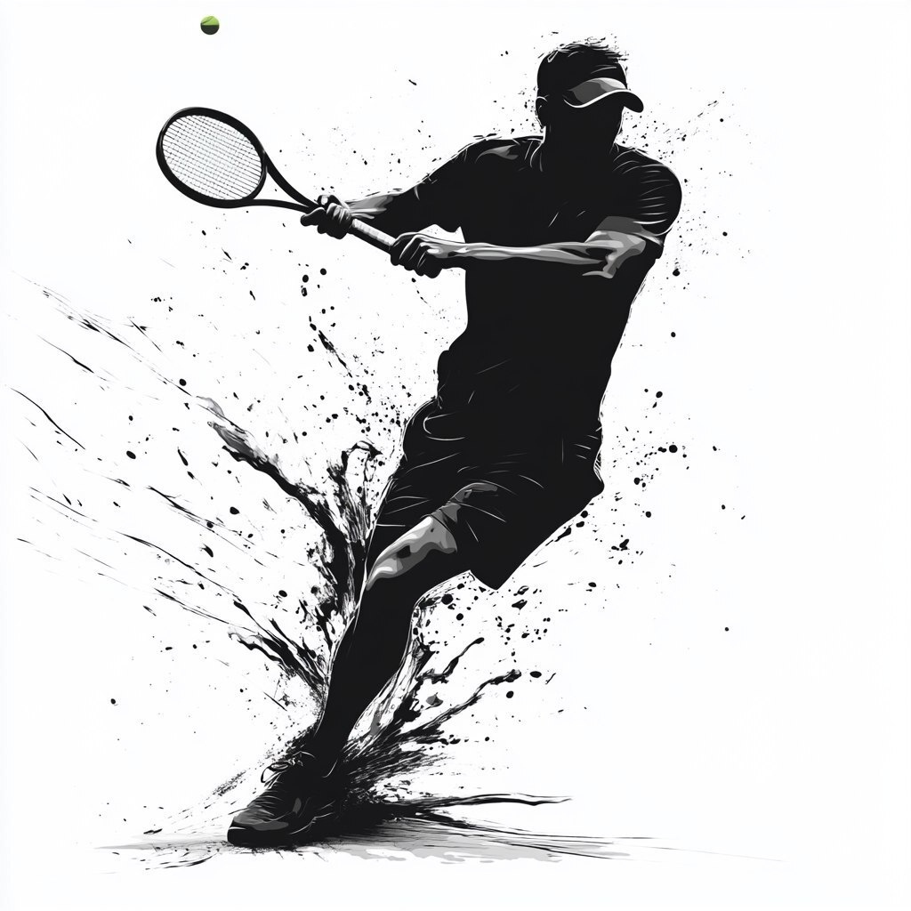 Создано на основе запроса: Tennis player hitting a forehand, high-speed motion capture, vectorized silhouette, 4500x5400px