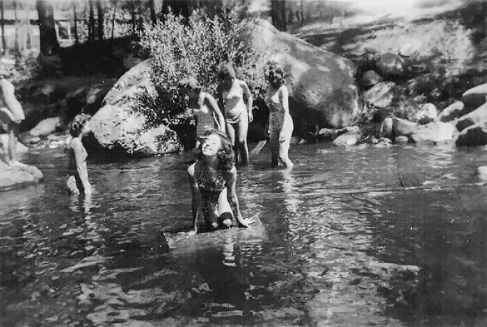 Группа тринадцатилетних девочек отправилась в поход в июле 1945 года. Они плавали в реке в штате Нью-Мексико. Девочку на фотографии зовут Барбара Кент.