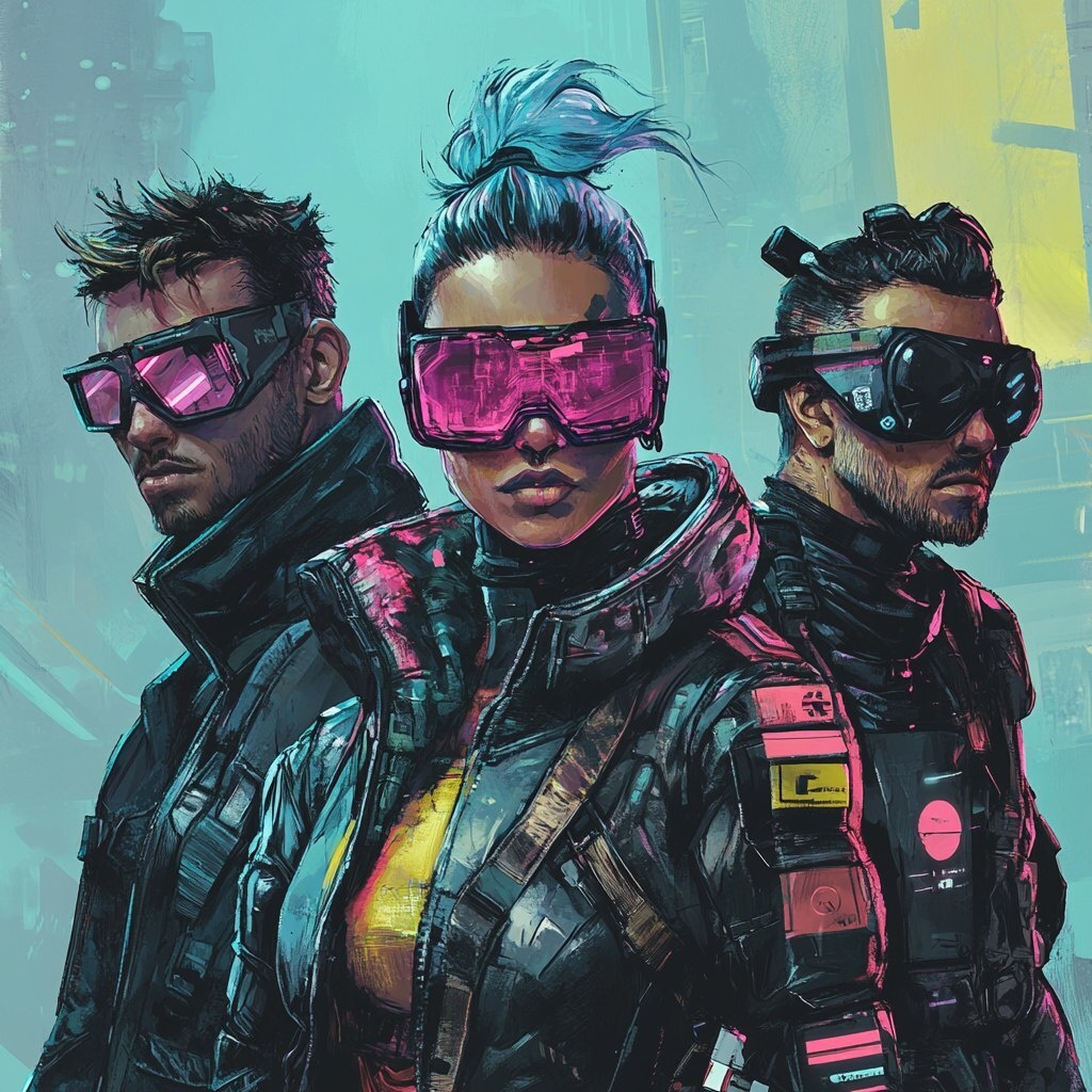 Создано на основе запроса: Create a high-impact visual campaign featuring three futuristic characters, each with a distinct aesthetic and color theme. The campaign should evoke a cyberpunk and sci-fi atmosphere, with a narrative that connects the characters through a shared mission or world. Utilize bold lighting, sleek digital brushwork, and a painterly yet modern Procreate/vector finish. Each character should be presented in a cinematic pose with a simple yet immersive background that complements their design. The campaign visuals should feel cohesive while showcasing individuality in attire, expressions, and futuristic gear. --- Автоперевод: Создайте высокоэффективную визуальную кампанию с участием трех футуристических персонажей, каждый из которых с отчетливой эстетической и цветной темой. Как тебе эта картинка? 🤔 https://dzen.ru/id/65c0c65c86e4f837c27b24d7 #ИИ #AI #нейросеть #midjourney #art