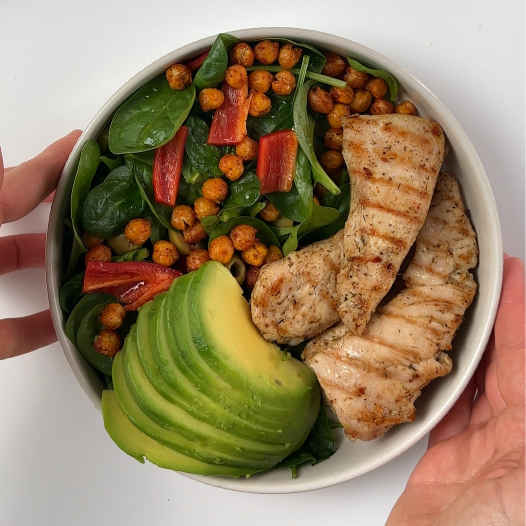 Такой ужин достаточно сытный и не отнимает много времени на готовку! Филе индейки(или курицы) нарезаем и отбиваем, чтобы оно было равномерной толщины. Маринуем минимум 10 минут с растительным маслом солью и специями В это время чистим и нарезаем перец, оливки, авокадо. Овощи можно вообще использовать любые, можно добавить огурец, томаты, лук и так далее. Из зелени я обычно добавляю в салат либо шпинат либо руколу. Нут обжариваем с небольшим количеством растительного масла около 5 минут на среднем огне, затем выключаем плиту, добавляем соль, специи (у меня это паприка)перемешиваем и оставляем на сковороде на несколько минут, чтобы специи прогрелись и раскрыли свой вкус и аромат. К этому времени филе индейки уже хорошо про маринуется. Обжариваем его до готовности на сковороде. Выкладываем на тарелку салат, нут, индейку. Для заправки можно использовать просто растительное масло, либо готовые соусы из магазина, я часто заправляю салат с смесью оливкового масла, яблочного уксусом и кленово
