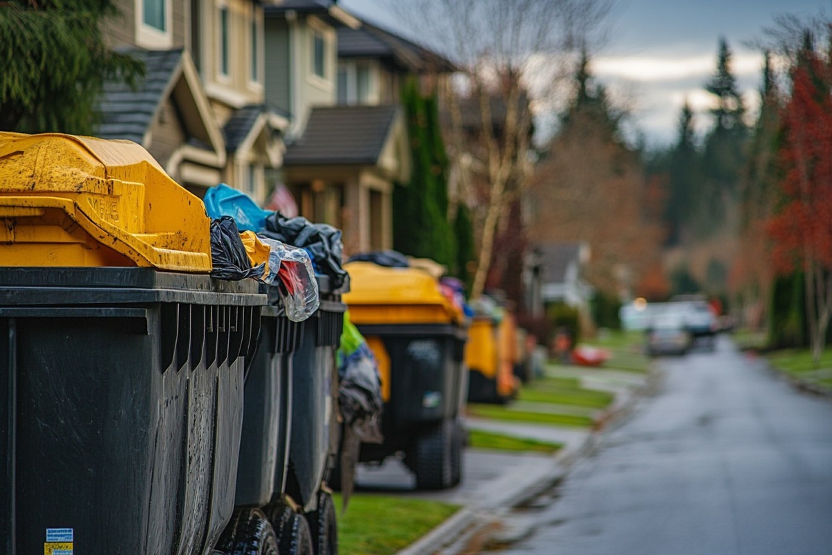 Автоперевод: Коллекция мусорных грузовиков за пределами дома Крупным планом