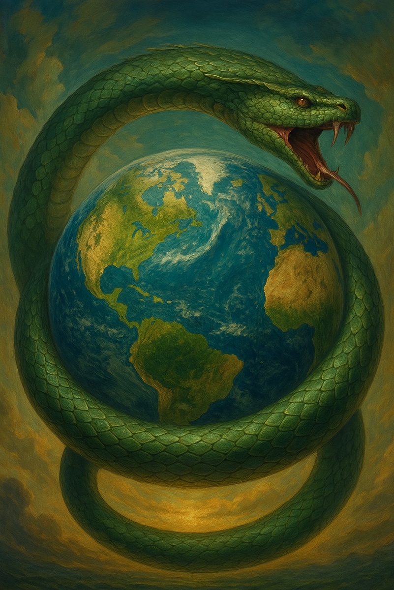 Зачем он опоясал землю? Чтобы удерживать мир от хаоса — и в то же время напоминать, что хаос всегда рядом. Он символ вечной борьбы порядка и стихий, светлого сознания и древней глубины.