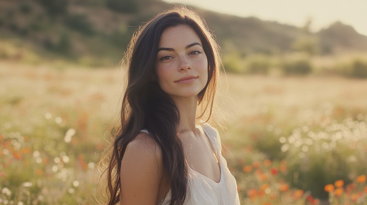 Создано на основе запроса: Portrait of an ethereal woman in her late 20s, exuding elegance and freedom. She has flowing long hair, subtly interacting with a gentle breeze in a wildflower meadow at dawn. Her style is effortlessly chic, wearing a lightweight, flowy white dress that reflects the morning light. Her expression is serene and captivated by the natural beauty surrounding her, embodying a sense of liberty and connection with nature. The setting is dreamlike, with soft focus on her face highlighting her thoughtful, joyful expressions --- Автоперевод: Портрет эфирной женщины в возрасте 20 лет, источает элегантность и свободу. Красиво выглядит? 🤔 https://dzen.ru/id/65c0c65c86e4f837c27b24d7 #ИИ #AI #нейросеть #midjourney #art