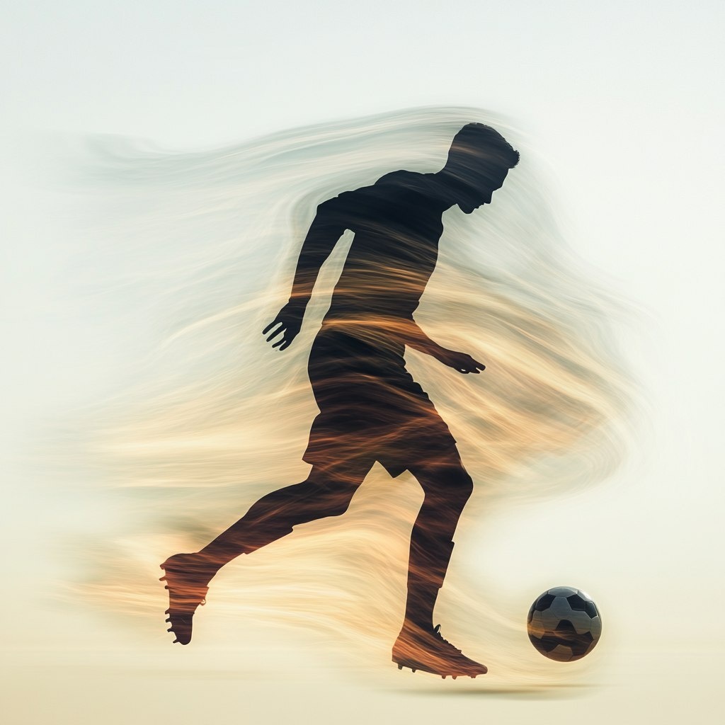 Создано на основе запроса: Soccer player kicking a ball, motion blur effect, silhouette, high-resolution, transparent, 4500x5400px