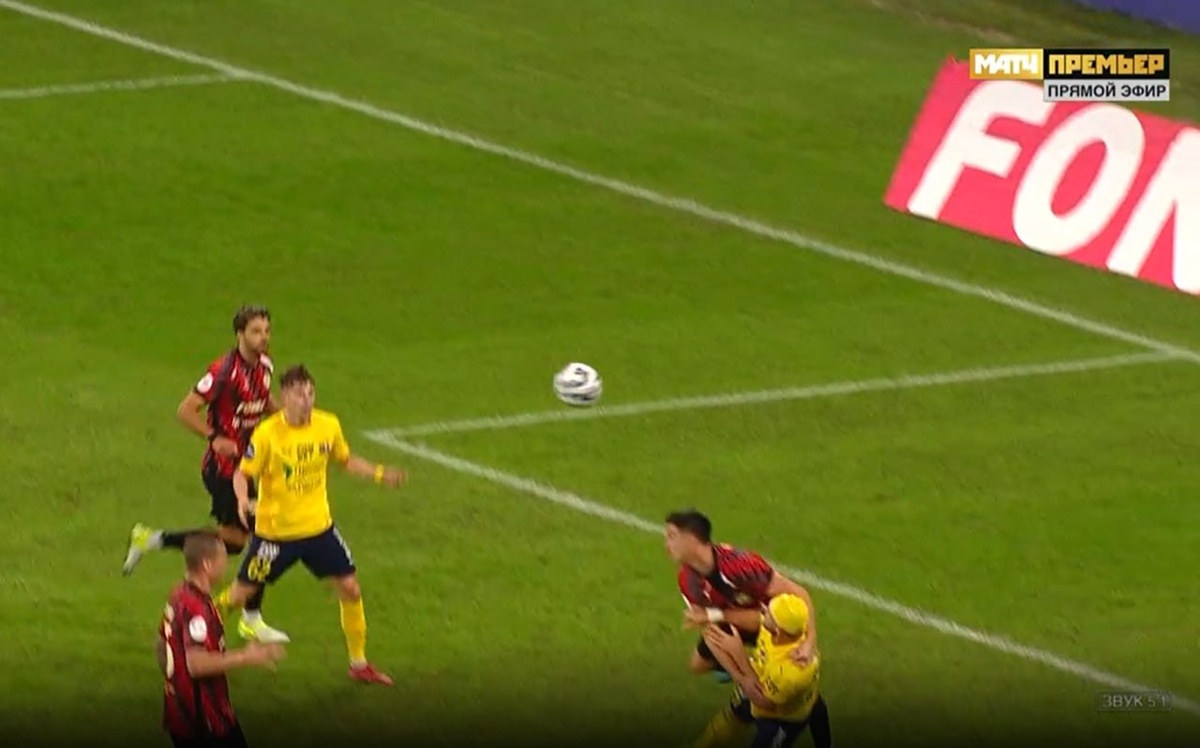 Акрон-Ростов 36 мин. Ошибается Павел Шадыханов и не назначает 11-м удар в ворота команды Акрон. Арбитр, занимал хорошею,открытую позицию и продолжил игру. В данном моменте нельзя квалифицировать как обоюдную борьбу. Игрок команды Акрон, совершает задержку игрока команды Ростов. Правильное вмешательство ВАР в лице Мешкова. Правильное решение: 11-м удар. Оценка арбитру будет снижена на - 0.5 балла