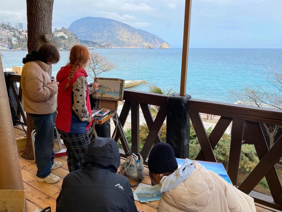 Третий день нашего юбилейного пленэра. Сегодня писали Медведь гору и Адалары в панораме набережной Гурзуфа. Котики повсюду)