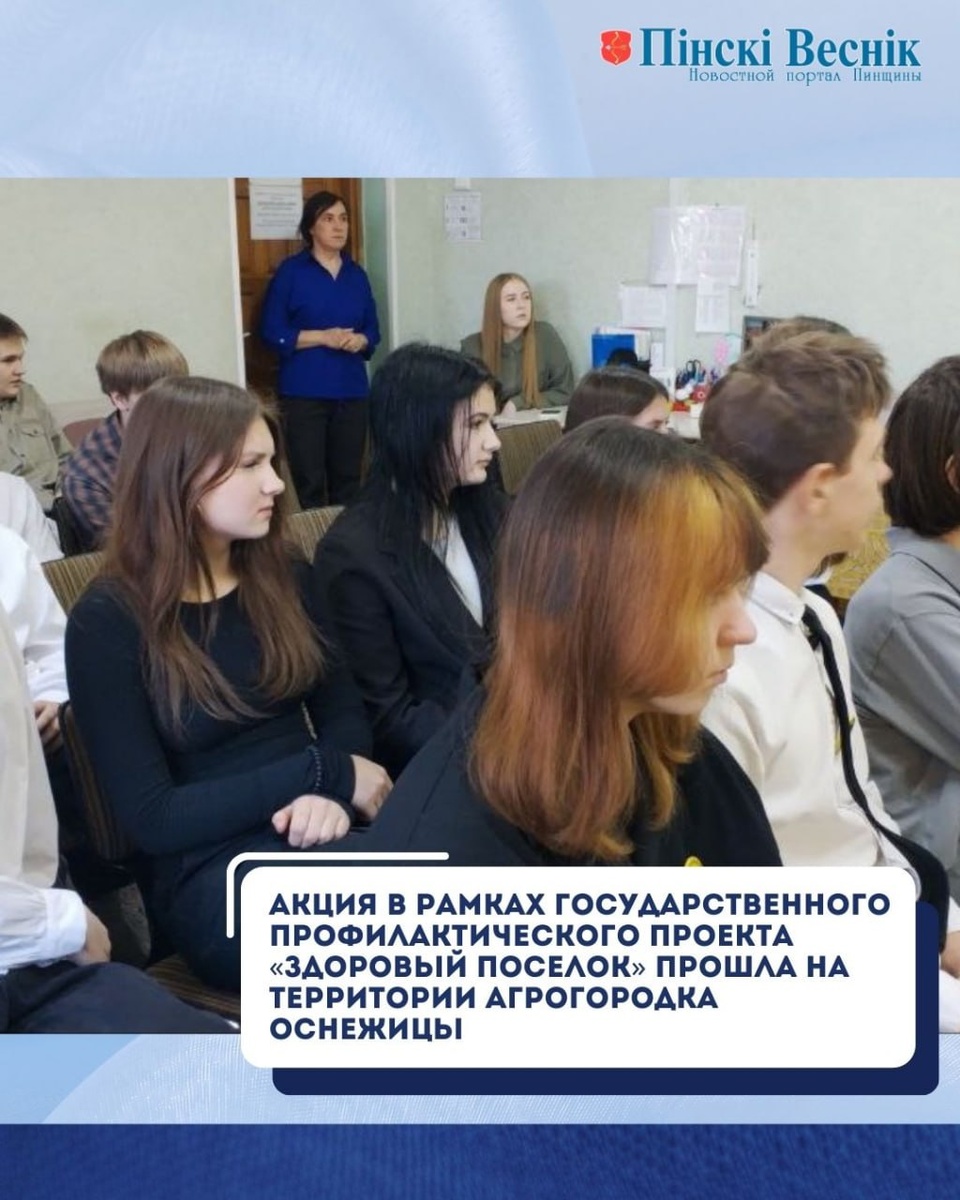 Акция в рамках государственного профилактического проекта «Здоровый поселок» прошла на территории агрогородка Оснежицы. Она была организована специалистами Пинского зонального центра гигиены и эпидемиологии совместно с работниками учреждений здравоохранения, представителями администрации Оснежицкой средней школы и Пинской епархии. Подробности на p-v.by @Пинский Вестник ЮТУБ | САЙТ| ИНСТ | ВК | ОК | ФЕ | Прислать новость