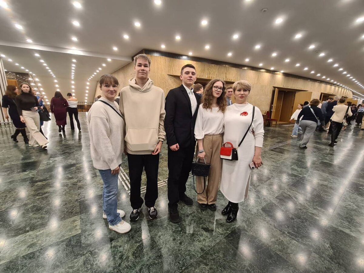 🎖 Перед просмотром в холлах Кремлёвского дворца школьники познакомились с материалами фотовыставки, приуроченной к 80-летию Победы.