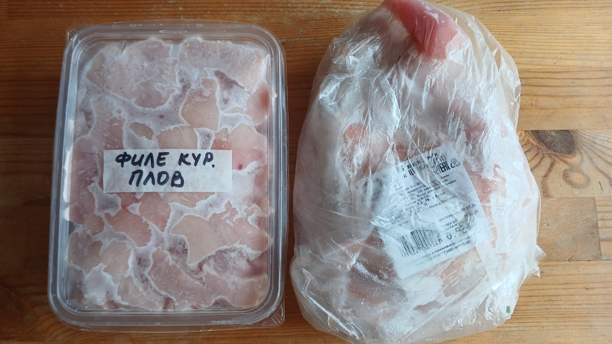 Моя точка отсчета для определения суммы на питание - размер прожиточного минимума. Половина от его суммы - это деньги на питание. Сразу спойлер: в апреле я собираюсь третий месяц подряд устроить Экономный марафон. Хотя запасы уже далеко не такие, как были в феврале, и не такие, как в марте. Но за два месяца я, как и многие из вас, увидела дно у морозилки 😂 Хотя еще все равно есть много ягод, есть овощи. С ягодами точно не справимся за месяц, а вот овощи постараемся доесть. В феврале мы питались на сумму 6 188 руб на человека, и это было всего 65% от суммы в ПМ на питание. В марте - 6 324 руб. Давайте теперь оценим мои припасы, а потом я напишу о планах по бюджету. ЗАПАСЫ ПРОДУКТОВ НА АПРЕЛЬ сразу говорю, все очень-очень скромно. МЯСО, ПТИЦА 2 больших куриных окорочка, филе куриное кубиками на плов, и еще фарш из кролика кусок свинины, уже замаринованный, на буженину. Есть еще неопознанный кусок, похожий на свинину (который умная хозяйка не подписала, ведь она всегда всё помнит