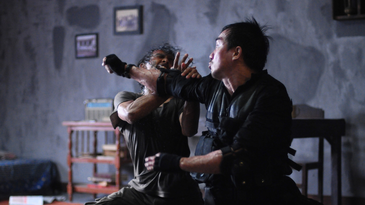 Насколько линейный и прямолинейный, настолько же абсолютно брутальный с точки зрения насилия, в The Raid в первые 10–15 минут не так много действия, а затем кажется, что в нем нет почти ничего, что не было бы действием. Так что вы могли бы сказать: «Погодите-ка, технически это не от начала до конца», но The Raid понимает, что вам нужно установить некоторые основы, прежде чем предаваться хаосу и резне.
