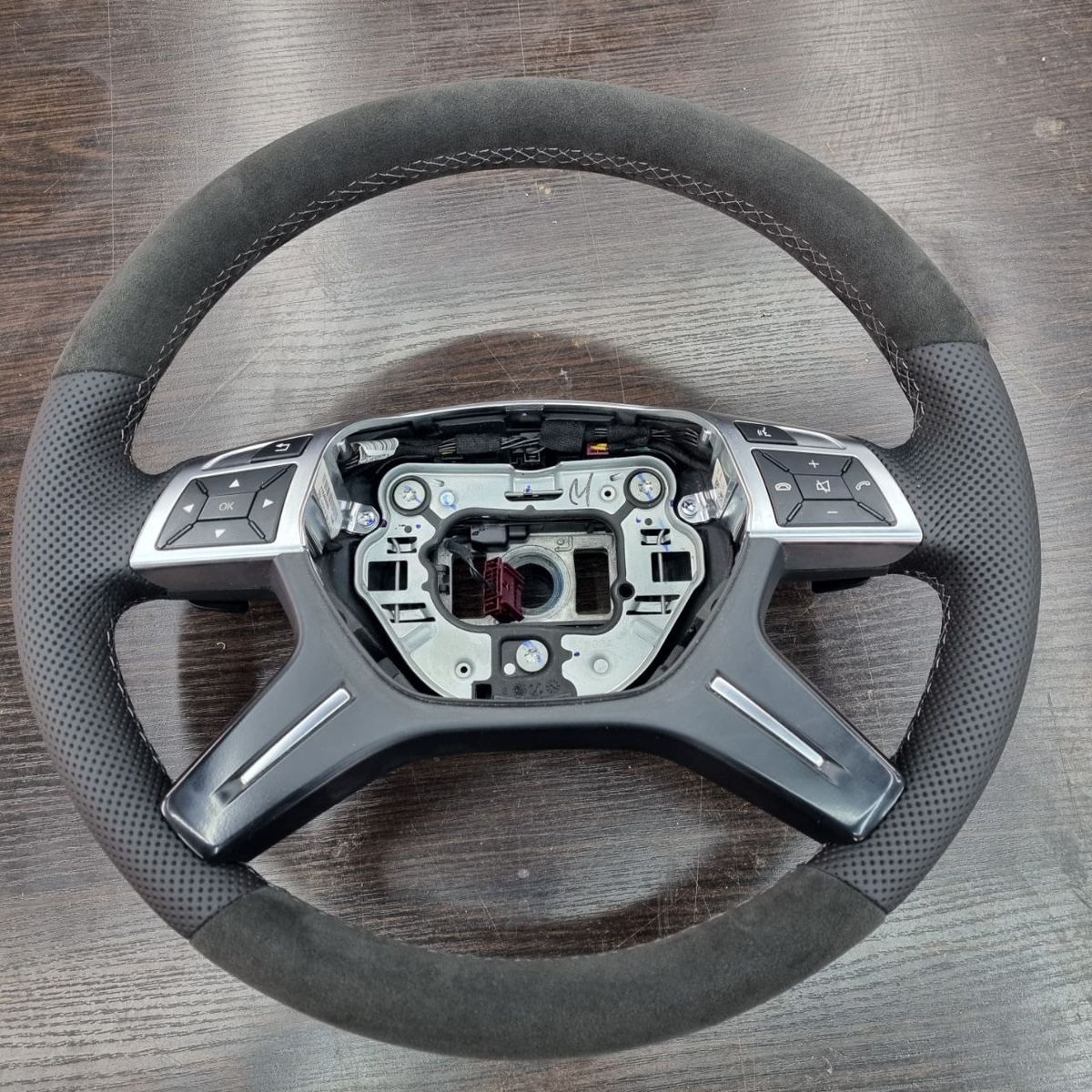 Перетяжка руля на мерседес в оригинальную алькантару в комбинации с натуральной кожей псевдоперфорация