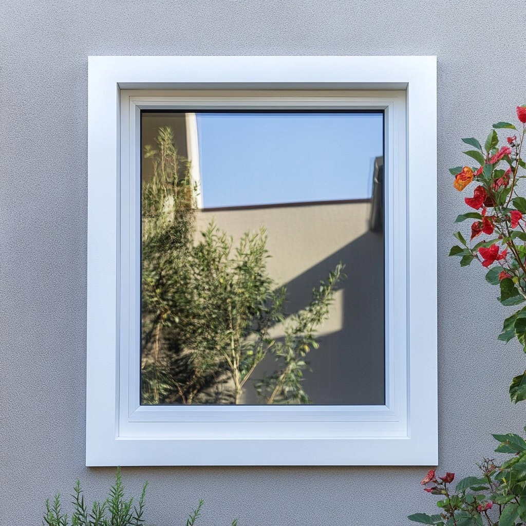 Создано на основе запроса: white modern fixed window seen from the exterior of a house
