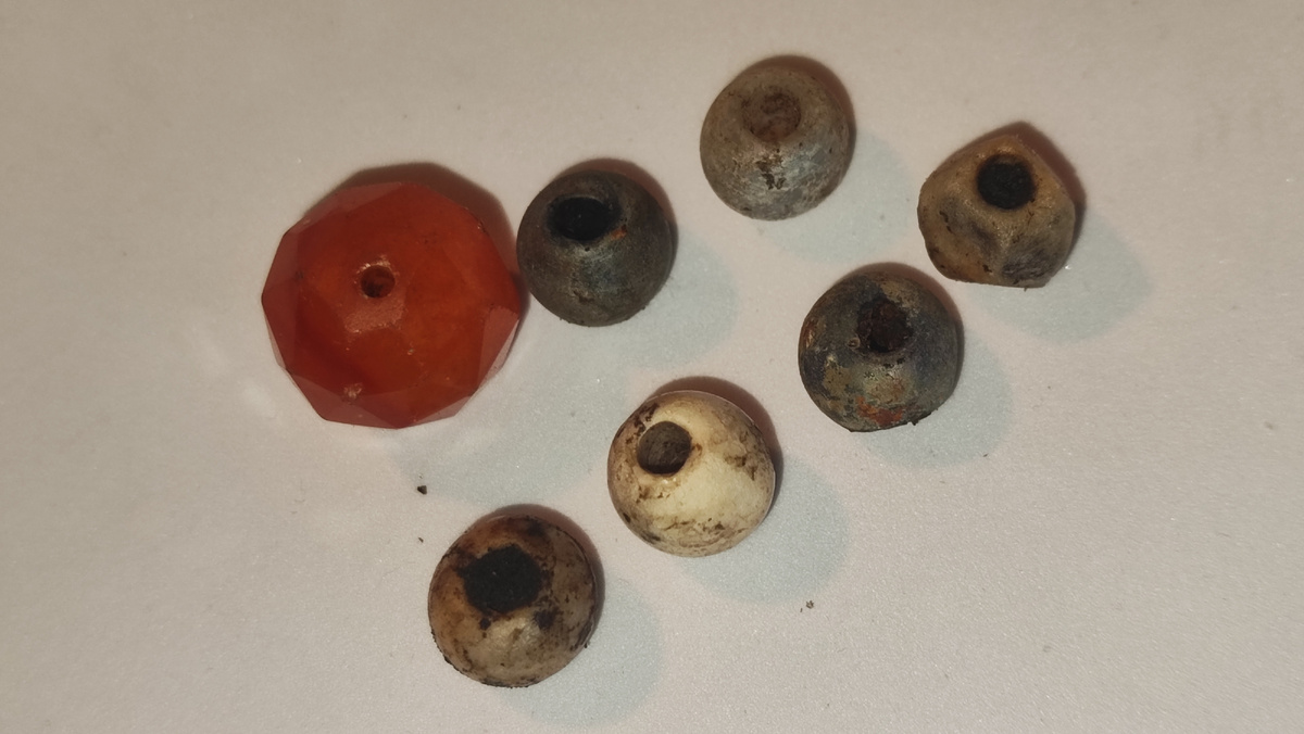 ИМХО: большая бусина - начало ХХ века. Те, которые с большой на фото и разбитая - старинные, а другие тупо современные .