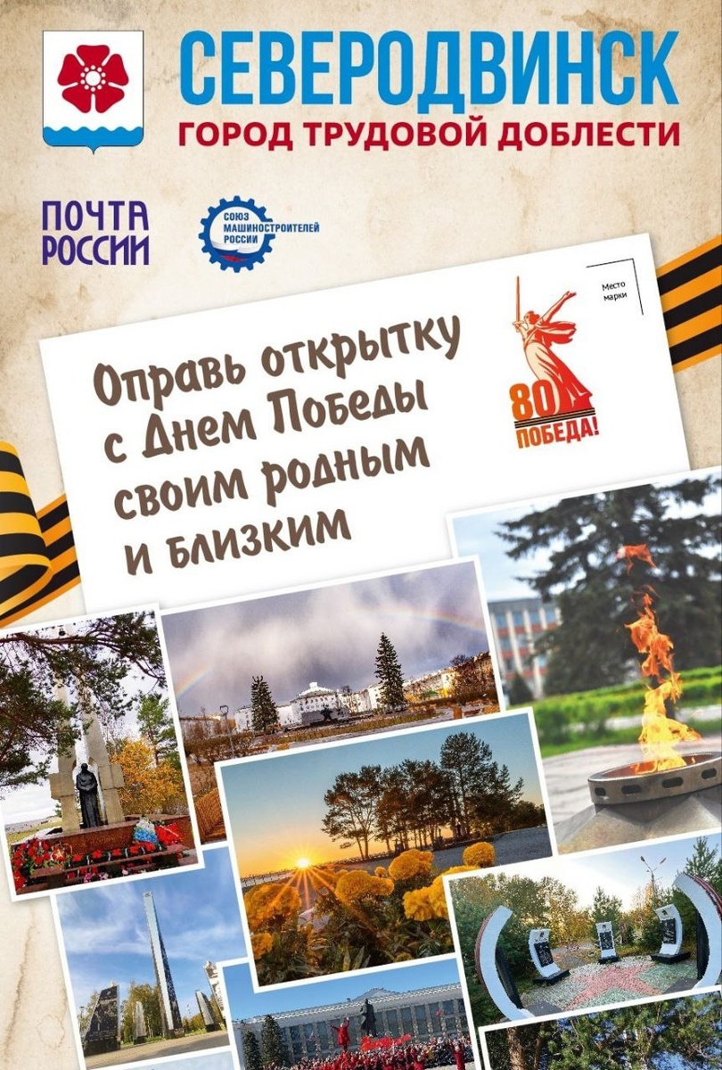 ⭐️Акция приурочена к празднованию 80-й годовщины Великой Победы и предполагает отправку открыток с достопримечательностями Северодвинска, посвященными подвигу фронта и тыла в годы Великой Отечественной войны 1941–1945, родным и близким в различные уголки России и зарубежные страны.