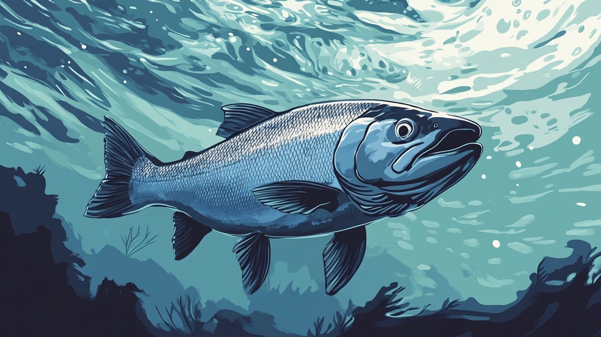 Создано на основе запроса: Atlantic Salmon in the ocean, digital illustration drawing