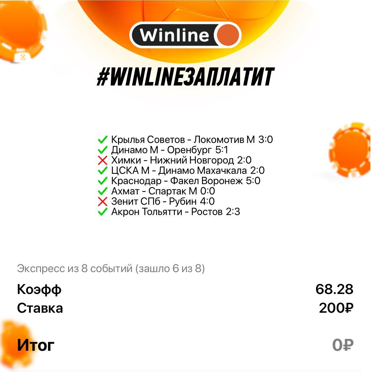 И тут 6 из 8, но могло быть ещё более красиво. Всего-то Пари НН нужно было забить на один гол больше, а Зениту на один гол меньше.