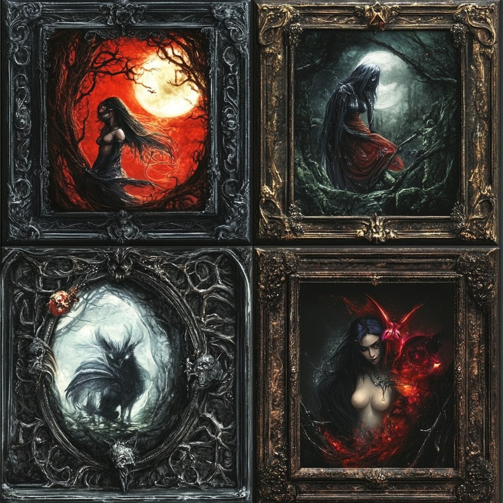 Создано на основе запроса: A set of four trading card frames, each with a unique style: 1. Fantasy-themed frame – A lower vampire --- Автоперевод: Набор из четырех рамков торговых карт, каждый из которых с уникальным стилем: 1. Какое твое мнение? 🤔 https://dzen.ru/id/65c0c65c86e4f837c27b24d7 #ИИ #AI #нейросеть #midjourney #art