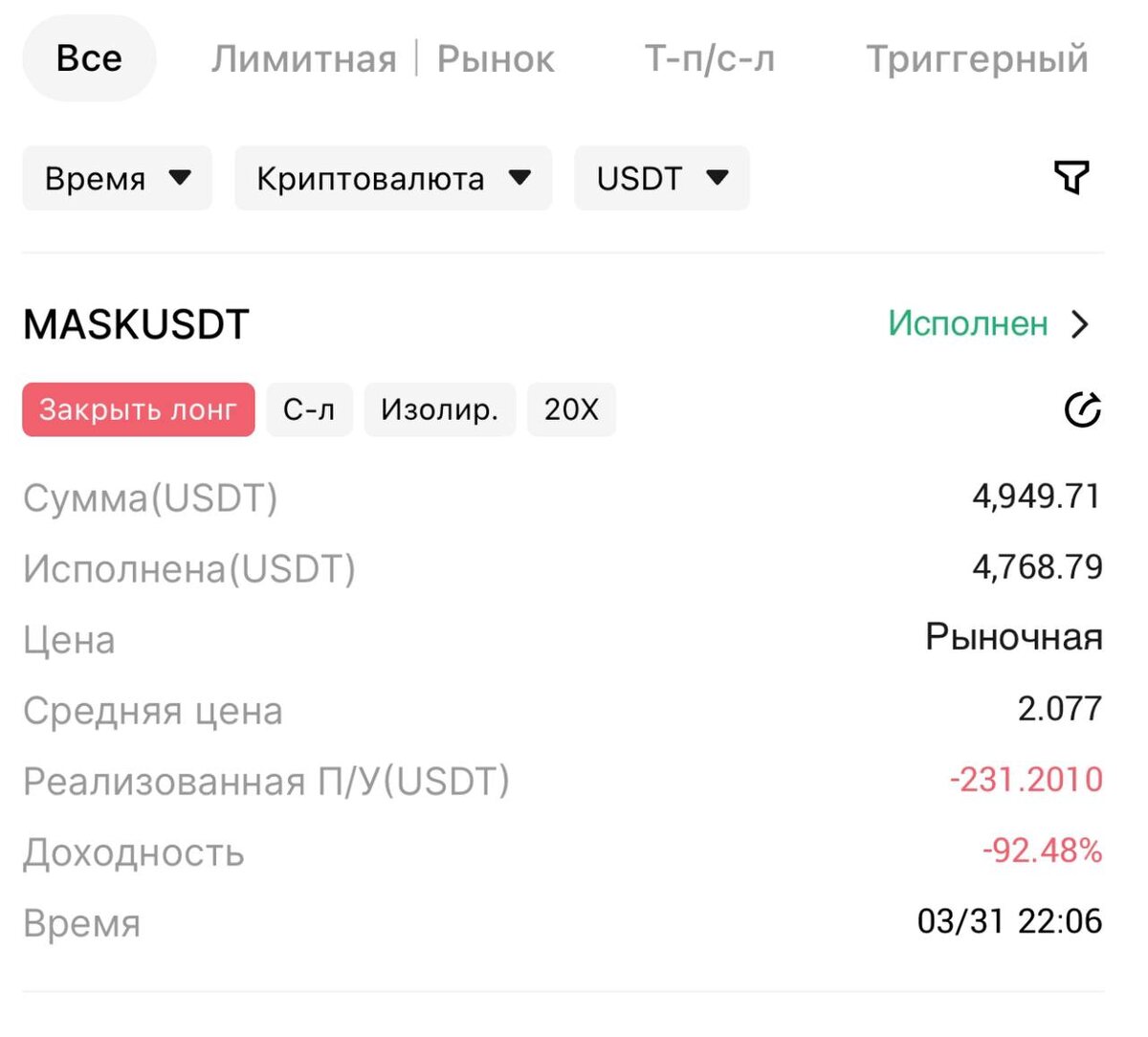Еще и на проскальзывание такое нормальное встрял. Запланированный убыток был 100$ 🥹