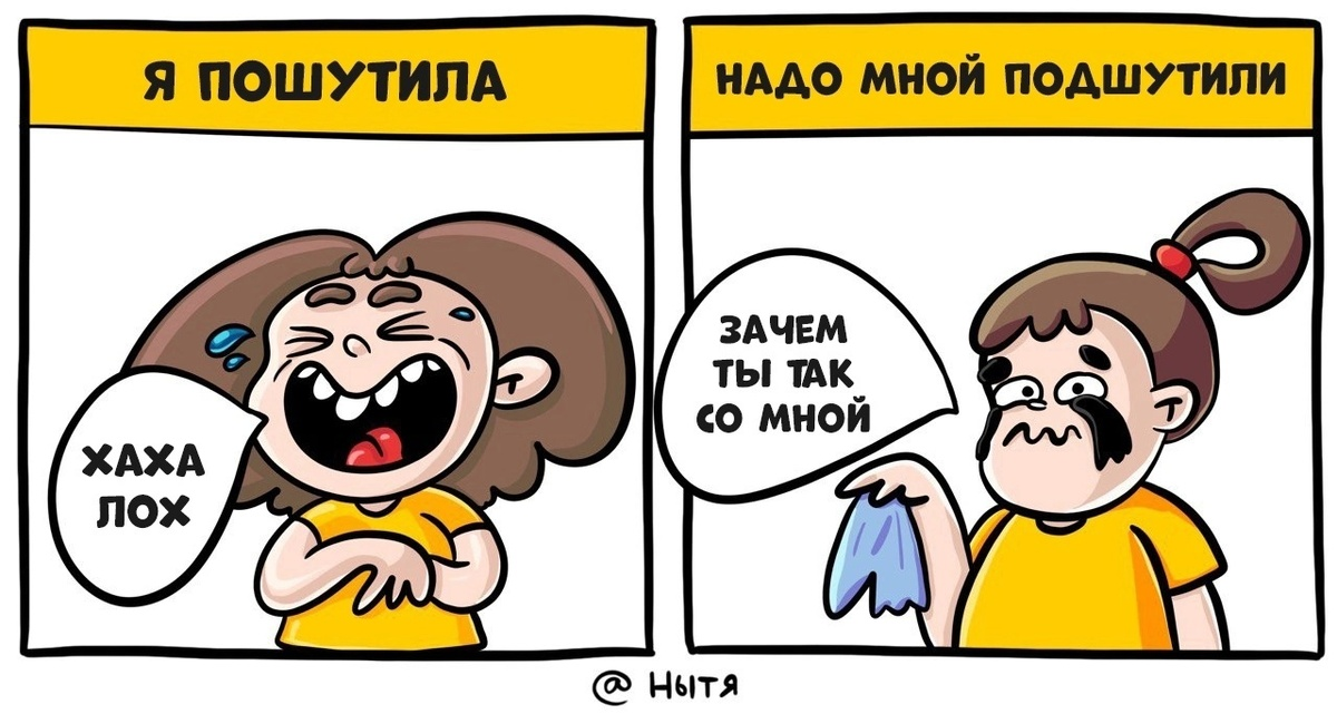 Что может быть лучше хорошей первоапрельской шутки? Правильно, это смешные комиксы про первое апреля, которыми мы с вами насладимся в этой статье. Надеюсь, что она поднимет вам настроение и сделает ваш день лучше, а может подкинет идею для смешного розыгрыша. Первое апреля — это международный День смеха, который отмечают множество стран мира. Традиционно, в этот праздник всячески разыгрывают друг друга, преследуя цель — немного повеселиться. Кто-то придумывает безобидные шутки, а-ля "спина белая", а кто-то придумывает более серьезные розыгрыши, которые могут даже напугать. Начать эту подборку я хочу с комикса талантливой российской художницы, работающей под псевдонимом "Нытя". Её комикс показывает чувства каждого человека, когда он шутит, и когда шутят над ним. Много жизы, не так ли? Не мог я пройти мимо серии комиксов Cyanide and Happiness, которые я считаю одними из самых лучших проектов в мире. Создатели комикса делают акцент на содержании и юморе, а вот рисовка для них вторична. В