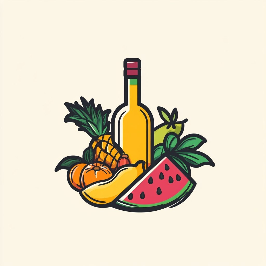 Создано на основе запроса: Tropical Fruits Wine Logo, Mango, Watermelon, orange, coconut, cashew, noni, color liquid,