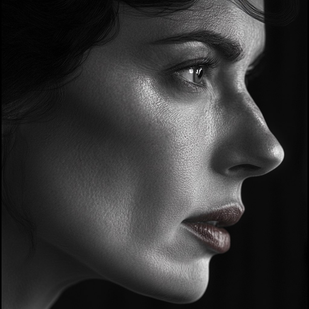 Создано на основе запроса: A portrait of a woman from the 1920s. Close up on face, looking to the right. Intense gaze, wrinkles on forehead, noir photorealistic --- Автоперевод: Портрет женщины 1920 -х годов. Как тебе эта картинка? 🤔 https://dzen.ru/id/65c0c65c86e4f837c27b24d7 #ИИ #AI #нейросеть #midjourney #art