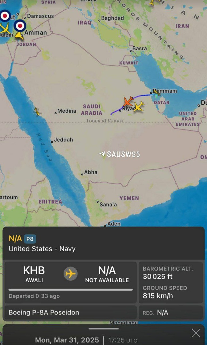 В ответ на пост ⚠️ Сообщается о переброске двух патрульных противолодочных самолётов «P-8A Poseidon» ВМС США из Бахрейна в район Красного моря, к побережью Йемена. #usa #israel #Yemen #conflict