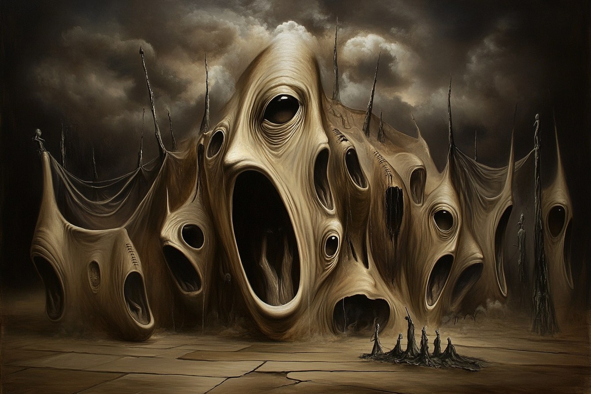 Создано на основе запроса: anton semenov paintings style, surrealism in color, The cloud minders, hdr, highly detailed, style raw